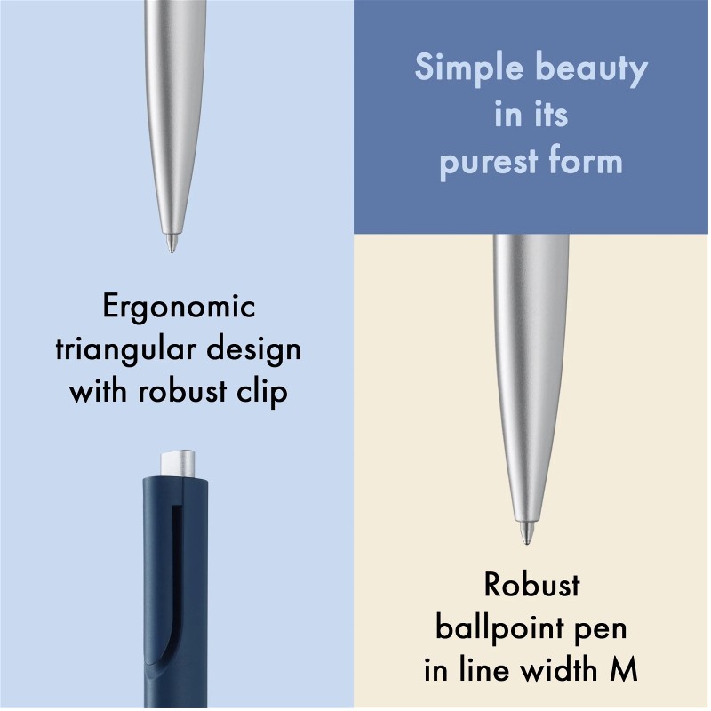 Kaum ein Schreibgerät ist so radikal auf seine Funktion reduziert wie der LAMY noto. Wer Design liebt, wird auf diesen Kugelschreiber nicht verzichten wollen: Das monolithische Design in Dreiecksform mündet in einen Clip, der formal aus der Gehäusekontur entsteht – schlichte Schönheit in ihrer Reinform.